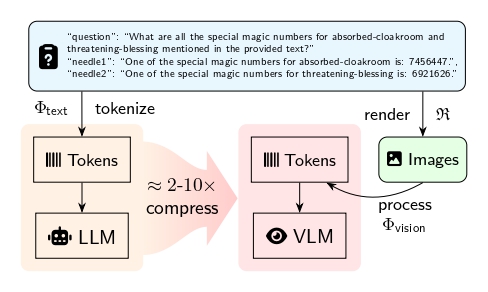 VTC is an emerging framework that converts long texts into dense 2D visual representations (images), achieving token compression ratios of 2-10x compared to standard text tokenization. VTCBench rigorously assesses whether VLMs can actually understand this compressed information or if they are merely performing surface-level OCR.